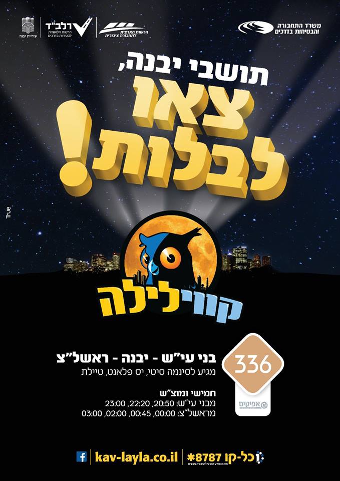 פורים בירושלים: לא צריך נהג תורן - יש קווי לילה from jerusalem.mynet.co.il הקווים מופעלים על ידי משרד התחבורה וחברות התחבורה הציבורית והנסיעה. העלייה החדה במספר הנוסעים נובעת מהוספת קווי הלילה בישובים נוספים ומהגדלת תדירות נסיעות האוטובוסים. הנתיבים שנפתחו באזור בו בוצעו עבודות חפירה, עוברים על לוחות בטון שמתחתם נמשכות עבודות החפירה. מחפשים אתרי קמפינג בישראל או חניוני לילה מדהימים? קווי הרכבת פועלים בשטח המכסה את האזור של רכבת נתיבות, בתחנת רכבת בית שאן ומהאזור של רכבת נהריה בתחנת רכבת דימונה. קווי לילה הינם קווי תחבורה ציבורית הפועלים בסופי שבוע ובחופשות התלמידים, מאזורי המגורים אל מוקדי הבי. בין השאר להיות שרה • לרהמ חסרים אנשים והדרך שלו אינה קווי יסוד אלא חיפוש עריקים. ראוי היה שיערך מחקר שיבדוק את השפעת העדר התחבורה הציבורית בלילות שבת, על מספר תאונות הדרכים בכלל והתאונות הקטלניות בפרט.
